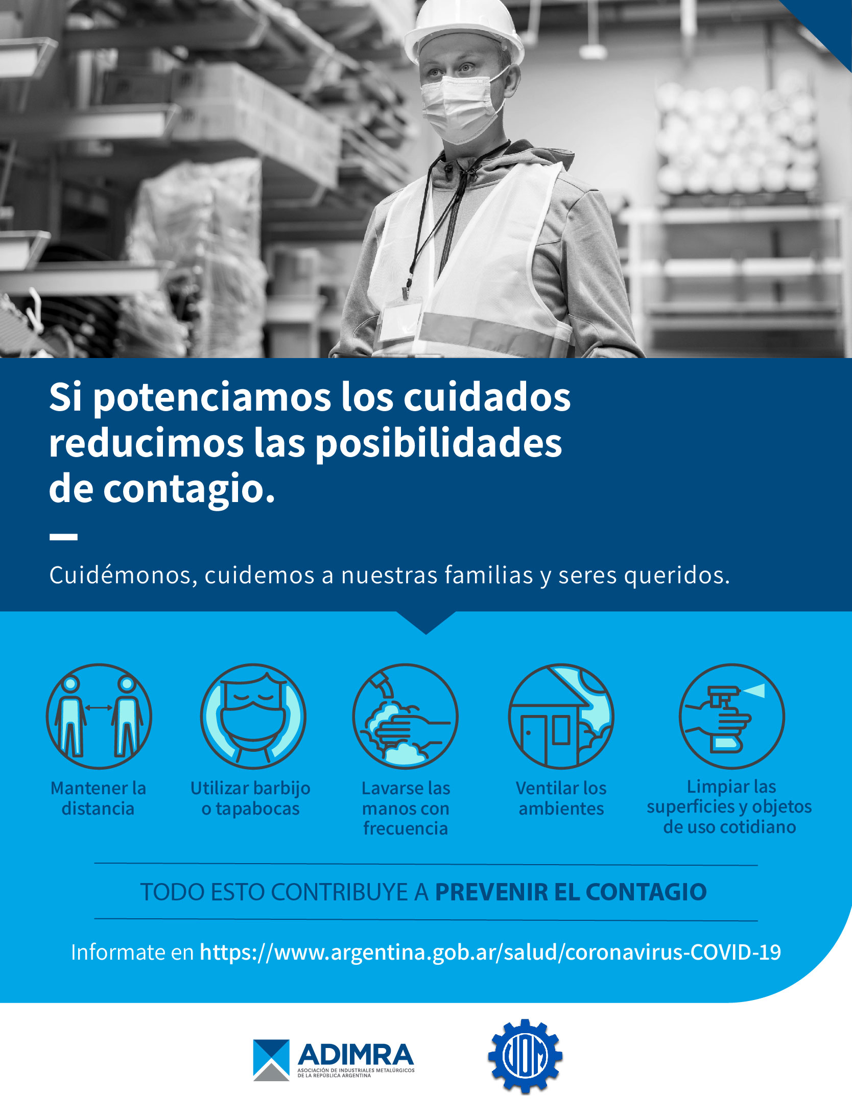 La campaña para promover la vacunación es otro paso más de la vinculación entre ADIMRA y la UOMRA que en los últimos dos años vienen trabajando intensamente para desarrollar un protocolo que promueva el trabajo seguro dentro de las fábricas y permita minimizar las posibilidades de contagio de los/las trabajadores y sus familias.