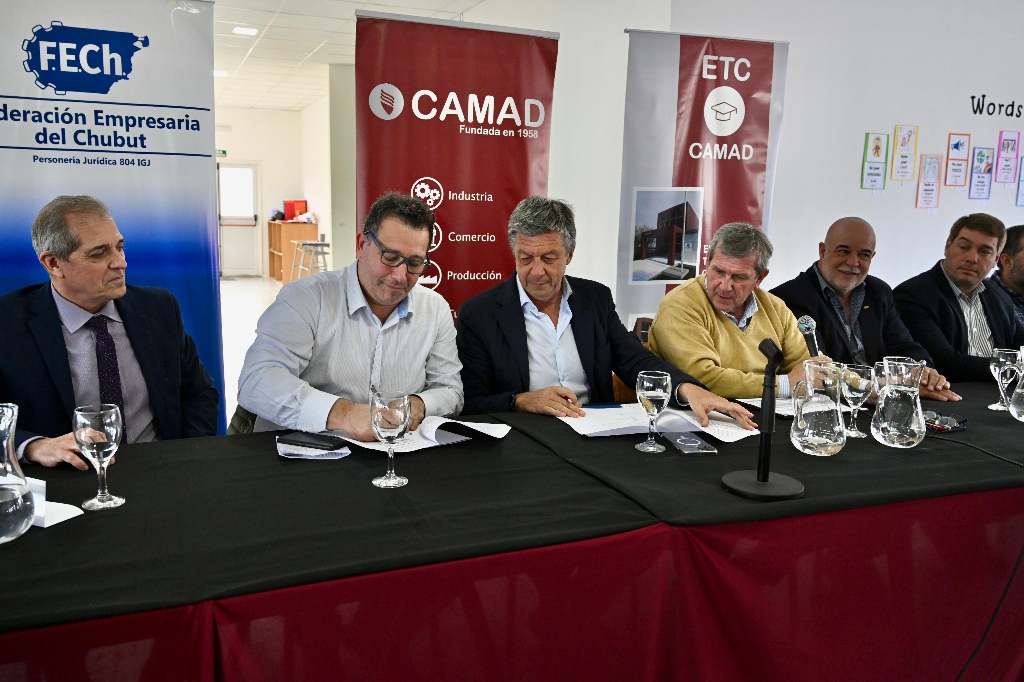 Estuvieron presentes el ministro de Educación, José Luis Punta; el secretario de Trabajo, Nicolás Zárate y el presidente de la Federación Empresaria de Chubut, Carlos Lorenzo.