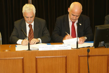 Estuvieron presentes junto al Presidente de ADIMRA, el secretario de Turismo, Enrique Meyer, el jefe de Gabinete del ministerio de Turismo, Horacio Cepeda, y el secretario Ejecutivo del Inprotur, Lic. Leonardo Botto, quienes celebraron esta iniciativa en fomento de la producción nacional, en el marco de una ceremonia realizada en nuestra entidad, en un auditorio colmado de funcionarios y empresarios del rubro. Esta alianza posibilita que diversos productos del sector cuenten con los beneficios de la ?Marca País?, un isologotipo que caracteriza a los productos de industria argentina y los diferencia a nivel internacional, convirtiéndose en una herramienta fundamental para el desarrollo del comercio exterior. Durante el encuentro, el presidente de ADIMRA, Juan Carlos Lascurain, aseguró que ?la Marca País constituye un aspecto clave a la hora de posicionar a los productos nacionales ante la mirada de empresarios extranjeros?, a la vez que definió al Convenio como ?un paso más en el proceso, ya iniciado, de internacionalización de las empresas metalúrgicas argentinas?. Por su parte, el secretario de Turismo, Enrique Meyer exhortó al auditorio a sumarse a la Marca País en pos de ?potenciar las exportaciones de Argentina en el mundo?. A su vez, manifestó que este compromiso no se agota en el sello, sino que fundamentalmente se basa en el apoyo y colaboración mutua entre ambas entidades. Los funcionarios nacionales y el Dr. Lascurain coincidieron en que la firma del Convenio entre ADIMRA y el Inprotur es el puntapié inicial de una serie de acciones conjuntas destinadas a fortalecer el desarrollo de las Pymes metalúrgicas en el mercado exterior, como la difusión en ferias y misiones internacionales.El 5 de noviembre ADIMRA firmó un Convenio con el Instituto Nacional de Promoción Turística (Inprotur) para el uso de la "Marca País" en los productos que la industria metalúrgica exporte.